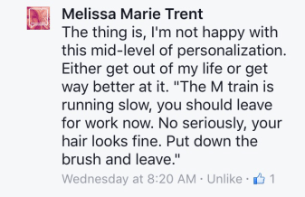 “The thing is, I’m not happy with this mid-level of personalization. Either get out of my life or get way better at it.”