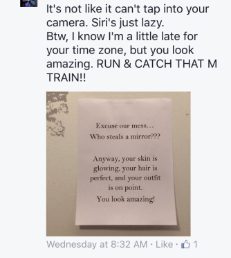 Ok maybe she doesn’t know that you jumped out of a plane to get there. But she knows the rest. She does. Accept it. Also accept that she’s too lazy to do you a solid.