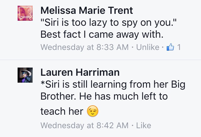 M: “Siri is too lazy to spy on you.” Best fact I came away with.